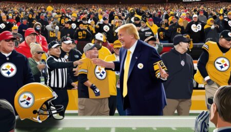Former President Donald Trump draws attention at the Steelers vs. Jets game as he campaigns against Vice President Kamala Harris,…